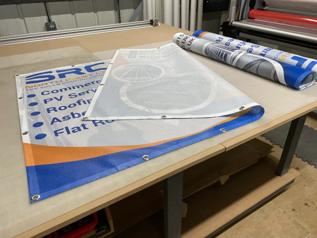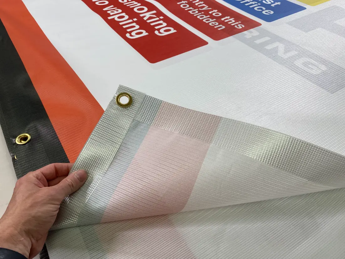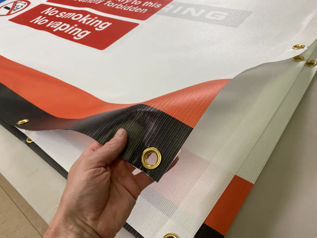 For our standard banners (PVC and Mesh) we recommend not placing any artwork or text within 50mm of any edges. Bleed of 25mms should be added to all edges.