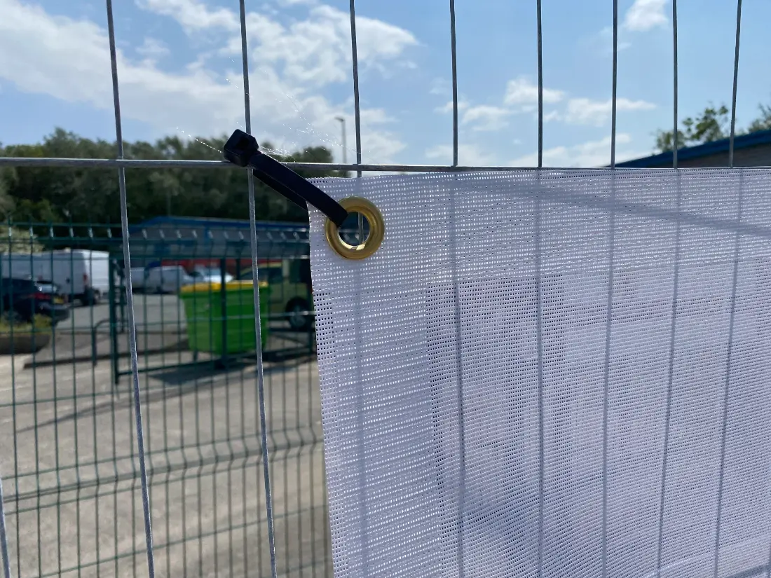 Clean cut with clear edging tape, Cut at Angle to Top Corners if required, Eyelets all round.
